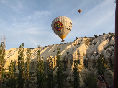 Kappadokien wird nach allen Regeln der touristischen Kunst vermarktet. Bus auf Bus drängen sich die Besucher an den vielen Sehenswürdigkeiten. In unserem großen, etwas runtergekommenen Hotel waren alleine 4 Busse mit Besuchern aus Polen und Malaysia untergebracht. Jeden Morgen zum Beispiel erhebt sich eine Flotte von ca. 150 Heißluftballonen über Kappadokien. Sie besuchen u.a. das Liebestal von oben. Der Ballonführer geht zuerst 1000 m nach oben, um den Ballon dann dicht an den 'Phalli' vorbei ins Tal absinken zu lassen. Er streift dabei Baumwipfel, von einem plückt er sogar eine Aprikose. gefährlich dicht ist er an anderen Ballonen dran. Vier Wochen später ist ein Ballon durch die Kollision mit einem anderen abgestürzt, 3 Tote. Wir hatten vorher auf einen ähnlichen Unfall in Ägypten verwiesen. Aber das hier sei doch die Türkei, wurde uns erklärt. Schlampereien wie dort gebe hier nicht, alles sicher! Das Liebestal lässt sich übrigens auch gut erwandern, nicht so viele machen das, aber es lohnt sich.