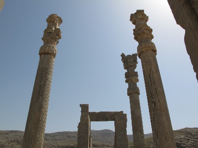 Am nächsten Tag fahren wir nach Persepolis, sicherlich ein Highlight jeder Iran-Reise. Hier fällt uns Abdulla so richtig unangenehm auf. Normalerweise war er bisher nicht in Lage irgendeine Erklärung zu den von uns besuchten Sehenswürdigkeiten zu geben (z.B. "Wann wurde diese Moschee dort gebaut?" -"Na alt ist sie, sehr alt!"). So haben wir vorher sehr ausführlich unseren detailierten Reise- und Kunstführer studiert und dann versucht, uns vor Ort zu orientieren. Doch in Persepolis wollen wir unbedingt einen kundigen Führer vor Ort haben. Ein junger Mann bietet sich an, uns auf Englisch zu führen. Abdulla ist tödlich beleidigt oder tut somindest so. Er stänkert rum, natürlich auf Farsi, der junge Mann ist eingeschüchtert. Was stört ihn, hat er Angst, dass der junge Mann uns auf Englisch - das versteht Abdulla kaum - uns Dinge aus der altpersischen Geschichte erzählt, die mit seinem religiösen Weltbild nicht übereinstimmen? Denn unser Reiseleiter ist sehr religiös. Jeden Mittag verabschiedet er sich kurz, um zu beten.