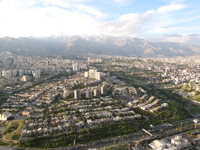 Zurück am Auto ist erstmal der Reifen platt. Den Reifen wechseln und einen neuen besorgen, kostet seine Zeit. Es sind nur noch hundert Kilometer bis Teheran und es ist später Nachmittag geworden. Nachdem wir einen großen Salzsee passiert haben, erreichen wir die südliche Stadtgrenze. Die 15 Mio. Stadt liegt vor uns. Die Bebauung endet im Süden am Salzsee, nordwärts steigt das Gelände stetig an und im Norden wird die Stadt vom Elbrus-Gebirge begrenzt. Das Stadtgebiet wird nach Norden immer steiler und endet schließlich am Fuß des Damavand, mit über 5000 m der höchste Berg im Iran. Unser Hotel liegt im nördlichen Teil in der Innenstadt.