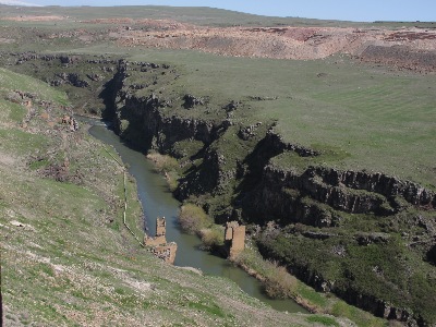 Wir fahren weiter nach Norden durch die ostanatolische Gebirgslandschaft Richtung Kars. Auf dem Weg besuchen wir Ani. Das große Ruinenfeld war eine mächtige armenische Stadtanlage an der Seidenstraße. Es liegt über einem Canyon, der die Grenze zu Armenien bildet. Auf der anderen Seite ein Wachturm, ein Dorf, nichts weiter ist dort zu sehen. Unter im Canyon erkennt man die Köpfe einer zerstörten Brücke. Die gesamte Grenze ist offiziell geschlossen auf Grund der tiefgehenden Meinungsverschiedenheiten zwischen beiden Staaten bezüglich der Nichtanerkennung des Völkermords durch die Türkei und anderer Streitfragen.