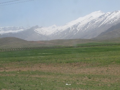 Nachdem wir für die 40 km herauf über drei Stunden gebraucht haben, brauchen wir für die 250 km nach Maschad, unserer ersten Station im Iran, genauso lange. Wir fahren durch eine großartige Gebirgslandschaft talwärts und dann auf einer Autobahn nach Osten. Irene hat an der Grenze vorschriftsgemäß ein Kopftuch übergeworfen, aber einen Mantel hat sie nicht an, sondern eine Bluse mit Hose. Das sei in Ordnung so, meint Abdulla. In einigen Reiseführern wird ein Mantel bis zu den Knöcheln als Vorschrift erwähnt, es scheint auf Ausländerinnen nicht zuzutreffen, denn alle iranischen Frauen haben einen Tschador an oder einen Mantel etwa bis zu den Knien.