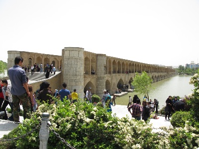 Was ist noch beeindruckend an Isfahan? Die Stadt ist unglaublich grün. Alle größeren Straßen sind Alleen. Überall verlaufen kleine Kanäle, die von Zeit zu Zeit geflutet werden. Südlich am Stadtrand beginnt das schneebedeckte Zagros-Gebirge und liefert das begehrte Nass. Etwas ganz besonderes ist der Fluss, der recht breit durch die Stadt fließt und zumindest bis zum Sommer reichlich Wasser führt. Vier alte, zum Teil doppelstöckige Brücken sind heute des Fußgängern vorbehalten. Junge Leute haben die Hosenbeine hochgekrempelt, laufen antlang der Brücke durch den nicht sehr tiefen Fluss, der hier über ein kleines Wehr fällt. Wir finden entspannte und lockere Leute vor. Es werden reichlich Eis und Süßigkeiten konsumiert. Eine chinesische Touristengruppe, die unaufhörlich fotografiert, erregt Aufsehen. Isfahan ist wirklich eine Reise wert.
