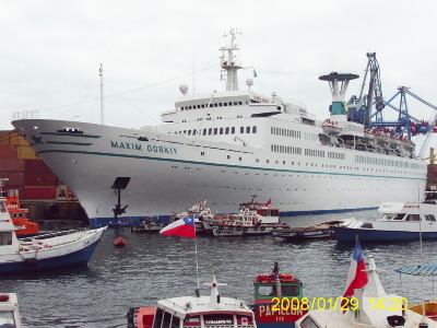 Wohin hat es mich nun verschlagen an Bord der Maxim Gorkij und der Albatros? Zunächst eine kurze Charakterisierung der Maxim Gorkij: Sie ist inzwischen ein betagtes Schiff, aber ein historisches Schiff. Auf ihm fand 1989 das Treffen von Michail Gorbatschow und George Bush senior vor Malta statt, auf dem die atomare Abrüstung zwischen den Supermächten beschlossen wurde. Zwei Räume, die Bibliothek und nebenan der Konferenzraum sind seitdem nicht verändert worden. Kurze Zeit später war das Schiff schon wieder in den Schlagzeilen, es war von einem Treibeisfeld nördlich von Spitzbergen am Bug aufgeschlitzt worden. Alle Passagiere mussten raus aufs Treibeis, die Rettungsboote wären zerquetscht worden. Die norwegische Marine hat sie von dort geborgen, niemandem war etwas passiert. Das Schiff konnte gerettet werden. Es fährt heute für ein Moskauer Unternehmen im Auftrag eines Bonner Reiseveranstalters unter der Flagge der Bahamas. Das Personal ist fast ausschließlich russisch. Jedes Jahr, wenn in Europa die Saison zu Ende ist, geht das Schiff auf Weltreise, aber jetzt soll es außer Dienst gestellt werden weil es einen Turbinenantrieb hat und der ist angeblich zu teuer.