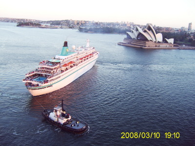 Den Zorn der Kreuzfahrer fürchtend begann der australische Zoll schon auf der Fahrt nach Australien an Bord die Pässe abzustempeln. Die Freude darüber hielt nicht lange vor. Sydney, das Traumziel der Kreuzfahrer in diesem Reiseabschnitt, machte es der Albatros schwer anzukommen. Das Schiff musste erst nach Newcastle, einer langweiligen Provinzstadt ca. 100 km nördlich von Sydney ausweichen. Dort sollte aus Sicherheitsgründen die Passkontrolle stattfinden, sie hatte aber schon an Bord stattgefunden. Die Kontrolleure waren in Neuseeland zugestiegen. Nach 5 Stunden ging es weiter nach Sydney.
