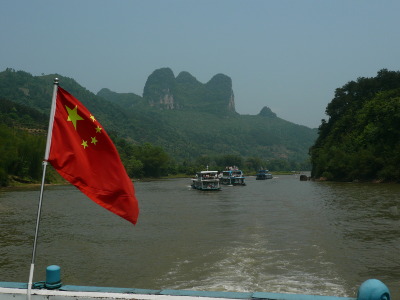 Guilin ist der Ausgangspunkt einer ganzen Flotte von Flussschiffen, die jeden Morgen den Li-Fluss abwärts fahren und sich dabei ein regelrechtes Wettrennen liefern. Man bekommt einen intensiven Eindruck von der Landschaft während dieser Tour, die dem in der Halong-Bucht in nichts nachsteht. Yangshoe ist der Endpunkt des Wettrennens. Eigentlich nur eine Kleinstadt ist es einer der schlimmsten touristischen Nepporte der Reise. Allerdings war die Anmache nicht ganz so heftig wie in Hue. Immerhin haben wir hier auch eine sehr schöne Fahrradtour entlang eines Nebenflusses des Li gemacht. Auch hier dominieren landschaftlich die Kalkfelsen, aber vor allem kann man während der Fahrradtour das Leben der Bauern aus nächster Nähe beobachten. Die Plagerei der Bauern mit ihren Wasserbüffeln im Reisfeld sieht archaisch aus, ist aber sehr real. Uns war schon vom Zug aus aufgefallen, dass die Größe der Parzellen in Südchina wesentlich kleiner ist als in Vietnam.
