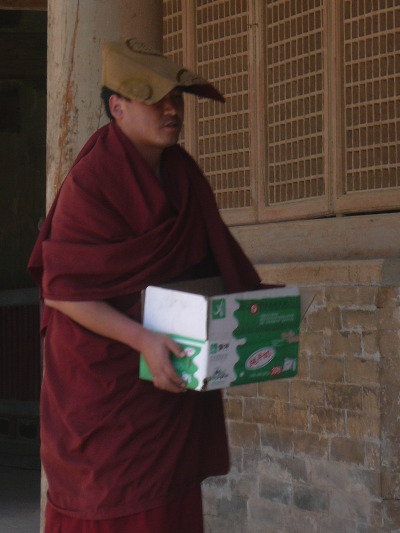 Frühmorgens, Lanschou ist "nur" 600 km von Xian entfernt, steigen wir übermüdet aus dem Zug. Die bisherigen späten Ankunftzeiten haben bewirkt, dass man das Programm in der nächsten Stadt relaxt angehen konnte. Das ist hier nicht so. "Peter" holt uns ab, seinen richtigen Namen verrät er uns nicht. Er macht uns Vorschläge für unseren ersten Tag. Er kennt über das Reisebüro unseren Ärger wegen des ausgefallenen Tibet-Besuch und schlägt uns vor, mit dem Auto nach Xining in der Nachbarprovinz Qinghai zu fahren. Dort gäbe es zwei tibetische Klöster, die wir besuchen könnten, eines davon sei sogar eins der sechs wichtigsten Klöster des tibetischen Buddhismus überhaupt. Wir könnten dann wenigstens einen Eindruck von dieser Kultur mit nach Hause nehmen. Wir willigen trotz der Aussicht auf weitere 600 km im Auto ein. Peter war ebenso wie unser Reiseleiter in Xian in Tibet gewesen. Beide waren sehr beeindruckt von der Kultur und haben fast gleichlautend betont, dass Tibet wirklich anders sei als das übrige China. Allerdings steht für sie außer Frage, dass Tibet zum chinesischen Staat gehört und Tibeter kein Recht haben, Han-Chinesen zu töten weil sie Chinesen sind, wie es während des Aufstandes im März passiert ist. Unsere Guides waren sehr vorsichtig in ihren Antworten, aber dass die chinesische Regierung in der Auseinandersetzung keine gute Figur gemacht hat und der Dalai Lama souverän mit den Weltmedien umzugehen versteht, diese Auffassung haben alle geteilt.