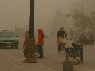 Harmonie, das oberste Prinzip des Konfuzianismus, hat die Partei zur Staatsdoktrin erklärt. Vielleicht muss sie das tun, denn Extreme gibt es in diesem Land genug. War die Umgebung von Lanschou schon sehr trocken, so schauen wir am Morgen nach unserer Abfahrt aus dem Zugfenster in ein graues diesiges Nichts. Der Zug fährt durch eine öde Wüste. Man könnte meinen, es wäre neblig, dabei ist es Staub, der die Luft trübt. Was für ein Kontrast zum üppig wuchernden tropischen Südchina. Wir nähern uns Dunhuang, einer kleinen Stadt, die aber jeder in China kennt. Sie war lange Zeit der westlichste Endpunkt des chinesischen Reiches, die Seidenstraße verließ hier endgültig die chinesische Zivilisation. Kaufleute und Soldaten holten sich in den Mogao-Höhlen seelischen Beistand für die Reise zu den westlichen Barbaren. Ich bin zum zweiten Mal, einmal hätte genügt.