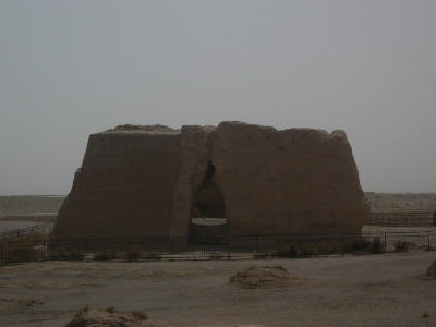 Wir checken aus unserem tollen Hotel aus, unser Zug nach Turfan fährt erst um 23 Uhr. Zeit genug, um eine weitere Tour in die Wüste machen. Wir fahren zum Jade-Tor-Pass. Er liegt in einer flachen Wüste im Übergang der Wüsten Gobi und Taklamakan. Hier befinden sich die westlichsten Reste der chinesischen Mauer aus der Zeit der Han-Dynastie. Hier teilt sich die Seidenstraße in eine Nord- und eine Südroute entlang der Wüste Taklamakan. In der der Nähe des Tores befindet sich noch ein Signalturm und eine alte Militärfestung. Wir haben noch Zeit und fahren auch noch zum Südpass. Dort ist außer einem alten Turm nichts mehr erhalten, aber inzwischen gibt es dort ein gutes Museum, dass einem General gewidmet ist, der für den Kaiser Wu Di in dieser Region die Hunnen vertrieb und die Seidenstraße sicherte. Die Hunnen zogen dafür nach Europa und machten dem Römischen Reich zu schaffen. Globalisierung antik.