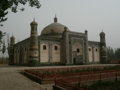 An Sehenswürdigkeiten hat Kaschgar außer seiner Altstadt nicht so viel zu bieten. Am eindrucksvollsten ist noch das Apak Haja Mazar, ein imposantes Gebäude eines moslemischen Herrschers aus dem 16 Jahrh., in dem aber auch eine uigurische Geliebte eines chinesischen Kaisers ruht. Ihr Leichnam wurde von Bejing hierher umgebettet. Schließlich gibt es noch eine Moschee mit 4000 Plätzen. Wir dürfen nicht hinein, angeblich wird sie renoviert.
