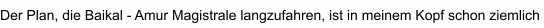 Am 3.Tag geht es weiter. Das Wetter ist fantastisch, nachdem es am Abend zuvor geschüttet hatte und wir unseren Lieblingsplatz draußen im Restaurant räumen mussten. Der Zug kommt aus Moskau und hat als Ziel Nerjungi nördlich von Tynda. Dort müssen wir umsteigen. Waggonschaffner ist ein etwas älterer, etwas korpulenter Herr, neben ihm steht eine sehr schöne junge Frau. Untereinander sprechen sie nach meinem dafürhalten türkisch. Ich frage nach, sie sind beide gebürtige Aserbaitschaner, Vater und Tochter. Die Tochter spricht Englisch und Deutsch, sie war kürzlich für einige Monate in Berlin, hat an der HU studiert und in Biesdorf gewohnt. War dort aber nur zum Schlafen, hat meistens in der Friedrichstraße abgehängt. Ein ungewöhnlicher Ort in Berlin zum abhängen.